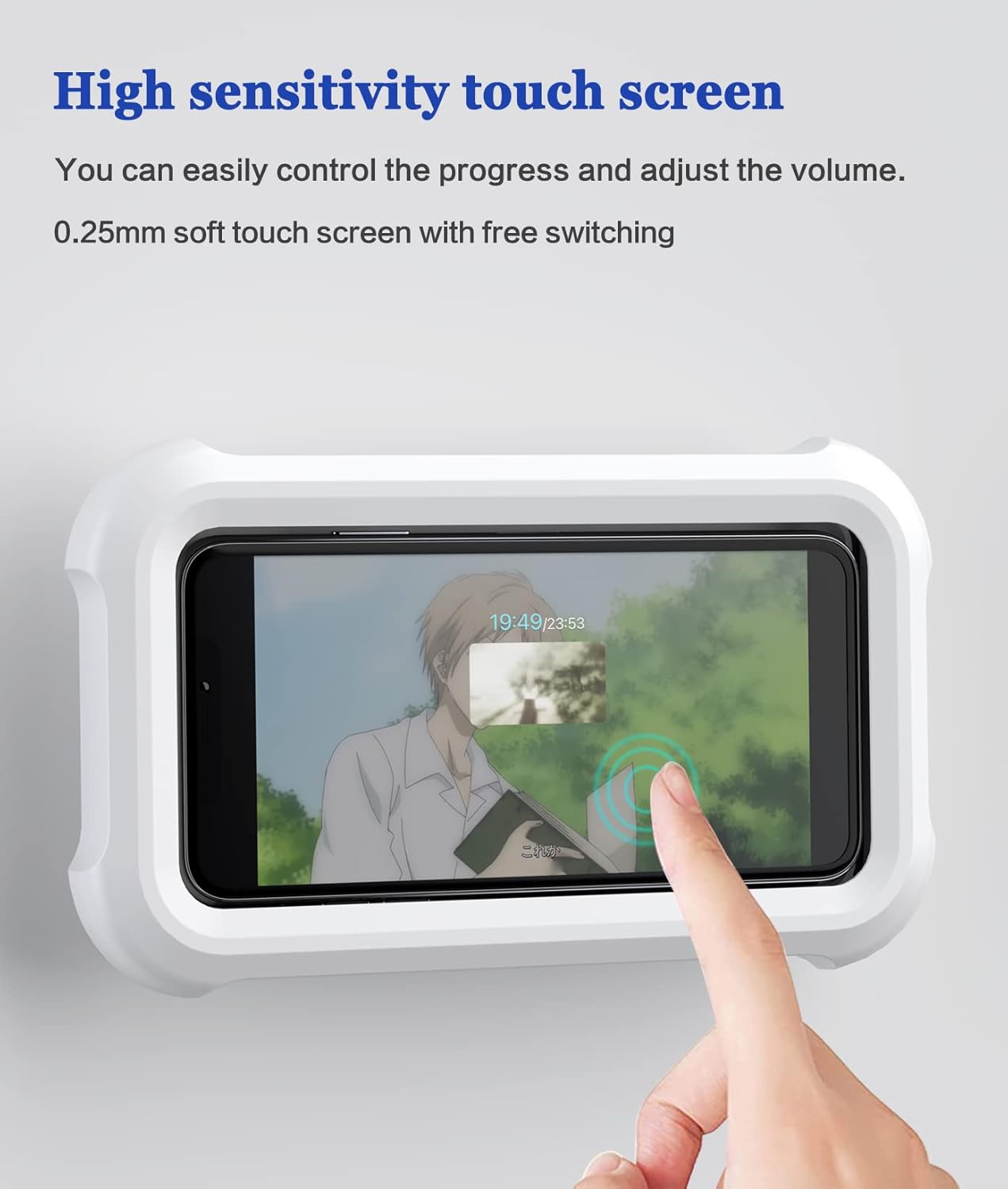 حامل موبايل ضد الميّ للحمّام، تركيبه على الحيط، بشاشة لمس تحمي تلفونك من الرشّات. شوف فيديو، اسمع موسيقى، أو رد على مكالماتك بلا إيدين!