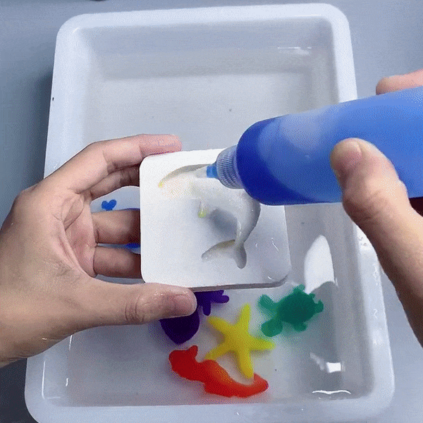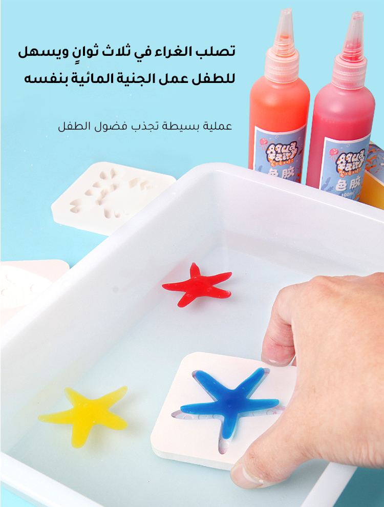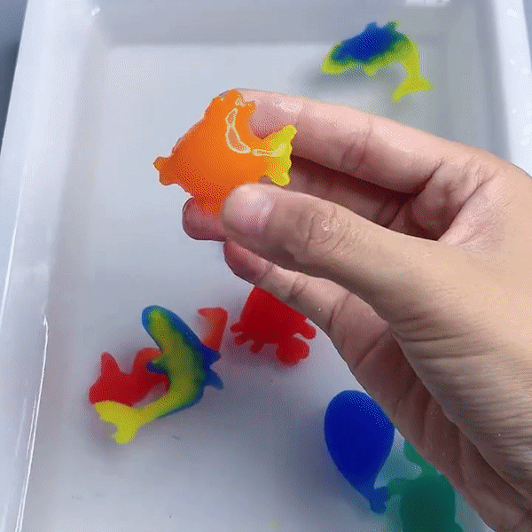 بعد اللعب بقزم الماء الممتع الذي يمكنك صنعه بنفسك، يعد ذكاء الأطفال خطوة كبيرة للأمام مقارنة بأقرانهم. اضغط على اللون الذي تفضله في القالب، ثم ضعه في المحلول، ثم قم بإخراج القالب في ثانيتين. يمكن أن يحفز الجمع بين قوالب الألوان المختلفة إبداع وخيال الأطفال فهي قوية وسوف تتوسع وتتشكل بعد 30 دقيقة من الفك وتحولها إلى لعبة سيليكون يمكنك اللعب بها بأشكال مختلفة لمدة عام كامل.
